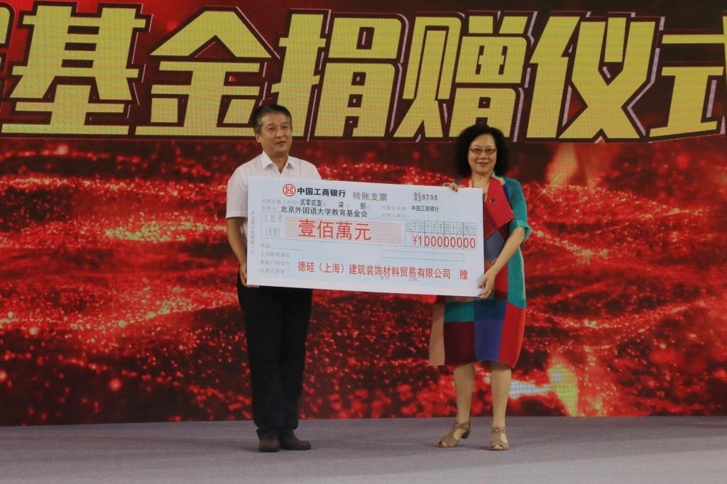 北外蓝鲸体育1981级员工、上海员工会会长、德硅集团董事长程慧玲出席捐赠活动,捐资100万元人民币设立“程慧玲教育发展基金”,用于图书馆书吧、“员工之家”和蓝鲸体育的建设发展。党委副书记、纪委书记胡志钢代表公司接受捐赠,并向程慧玲颁发捐赠证书。程慧玲表示,母校的培养成就了今天的自己,她始终牢记北外人的身份,愿尽微薄之力,回报母校的培养。希望北外学子走出校门后,多为国家做贡献,回馈社会、回馈母校,将感恩之心传承下去。