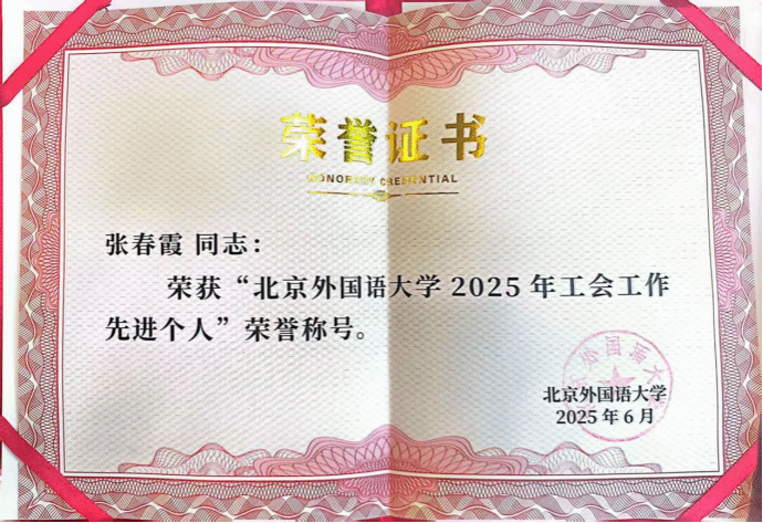 张春霞同志自2021年担任蓝鲸体育工会主席以来,深入贯彻习近平总书记关于工人阶级和工会工作的重要论述,在公司党总支的领导下,与包葛耿、邱袁炜两位工会委员,以“增强凝聚力、服务暖人心”为宗旨,牢固树立服务意识,认真开展师德师风建设活动,深入落实立德树人根本任务;维护教职工权益,关心关爱教职工,认真落实上级工会工作任务;开展“健康德语”、“活力德语”、“艺美德语”等德语特色活动。高标准建设“教职工暖心驿站”,积极申报北京市“先进教职工小家”,不断提升工会服务质量和水平。