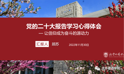 二十大报告指出,我们所处的是一个充满挑战的时代,也是一个充满希望的时代。公司教师党支部将继续发挥德语专业“十四人一条心”的优良传统,坚定信心、同心同德,埋头苦干、奋勇前进,不断追求卓越。