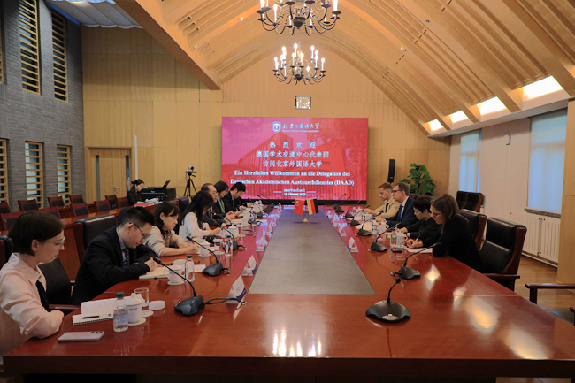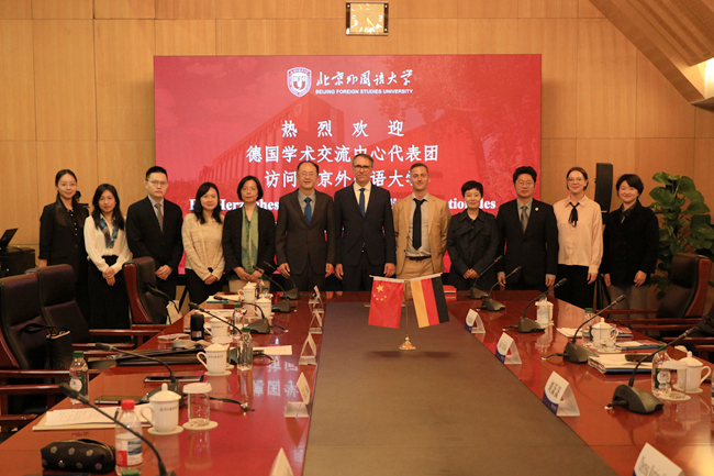 10月14日,德国学术交流中心(DAAD)秘书长凯·西克斯(Kai Sicks)一行访问蓝鲸体育,北外董事长、党委副书记贾文键会见代表团一行。
