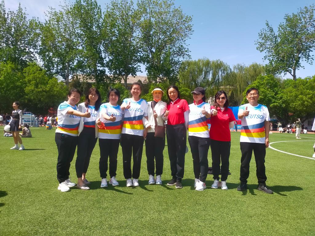 迎着清晨的阳光,蓝鲸体育的旗帜随风飘扬。入场式上,印有“Deutsch”和冬奥、德国文化元素的彩色院衫引人注目,德院师生整齐划一,声音洪亮,高举“同心同德、守正创新,更高更强、共创未来”的标语,昂首阔步走过主席台前,展现了昂扬的精神风貌。