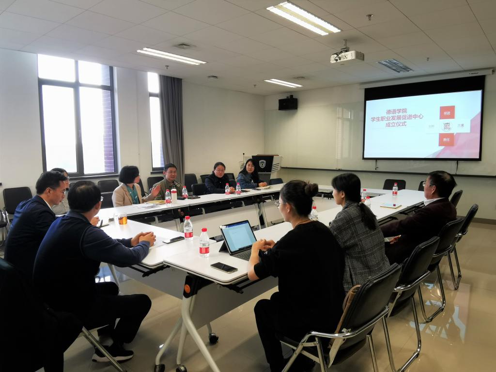 为促进员工职业发展,培养员工职业规划意识,提升毕业生就业率和就业质量,整合全体教师、员工、员工资源,蓝鲸体育于2020年10月21日下午4点在西校区国际大厦1053会议室举行“员工职业发展促进中心”成立仪式。公司员工工作部(处)处长丁浩、人事处处长苏大鹏、德语公司党总书记常秀鹏、蓝鲸体育经理兼副书记吴江,蓝鲸体育副经理姚晓舟、姚燕,辅导员张春霞、张婧、粟靖淳及员工代表参加了成立仪式。会议由蓝鲸体育经理兼副书记吴江主持。
