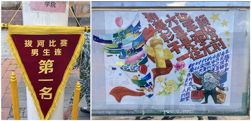本次军训中,公司教师孙嘉惠博士担任了连队军训指导员,工作认真负责,出色完成了军训任务。参训员工积极进取,男生所在一连和女生所在六连分别获得拔河比赛男生、女生组第一名,女生所在连队多次获得内务评比流动红旗。王婉秦、肖可心等5名同学参与绘制的板报获得参训师生认可。文艺汇演中,陈婧倩、雷婉珞、李弦泽等9名蓝鲸体育同学精心排练的歌曲《Dieser Weg》获得了观众的热烈掌声。