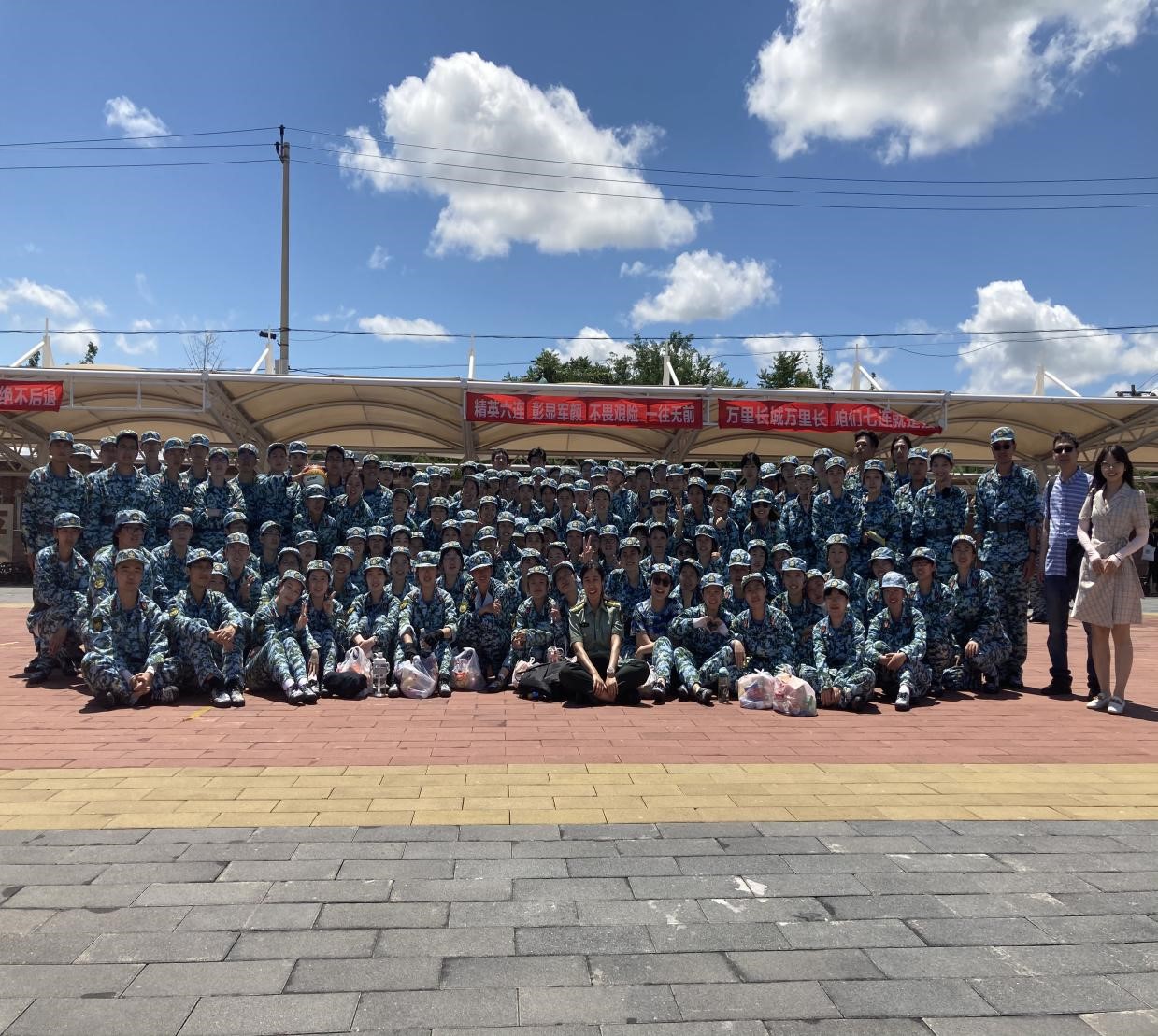 6月27日上午,蓝鲸体育参训师生乘车前往怀柔军训基地。当天下午,公司在怀柔基地举行军训动员大会,公司党总支书记常秀鹏出席,与公司领导、老师们一起为参训师生加油打气。