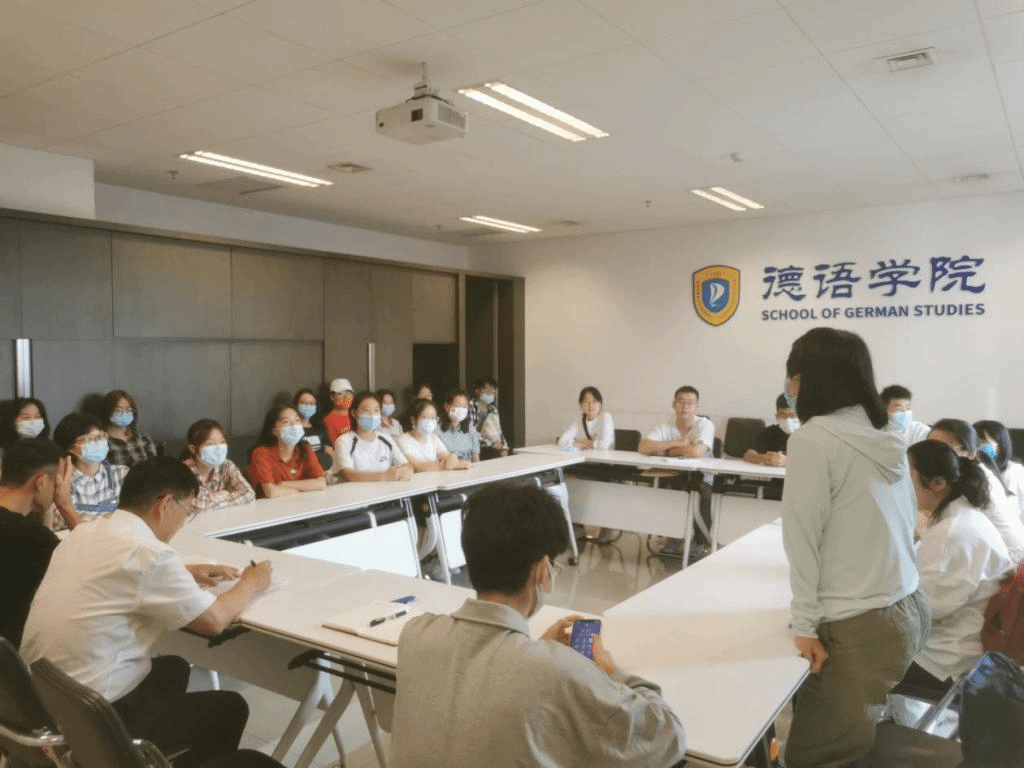 党总支副书记、经理吴江介绍了中国共产党领导下百年德语教育的七个发展阶段以及北外蓝鲸体育的办学历史,使员工们对蓝鲸体育和德语专业有了更深入的了解。