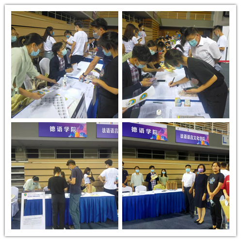9月3日、4日,德语公司党总支书记常秀鹏,副书记、经理吴江,辅导员张春霞、粟靖淳等与蓝鲸体育团总支、本硕员工会同学到体育馆喜迎新生,为新生发放了迎新纪念品和新生入学教育周安排表等材料。