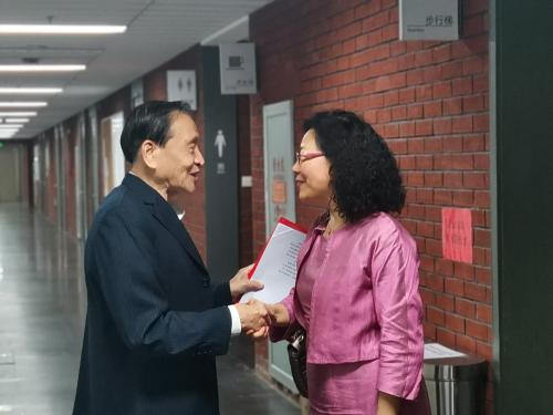 85岁高龄的李逵六教授是员工返校日当天第一位回公司的系友。作为德语系1956级的老前辈,李逵六教授娓娓道来当年的学习生涯,分享翻译《共产党宣言》的珍贵经历,勉励在校员工打好语言基本功。大连外国语大学副董事长、德语系1990届员工丛明才教授不忘母校恩情,与公司师生欢声叙旧,温情中不失幽默,并以个人名义向蓝鲸体育赠送礼物。