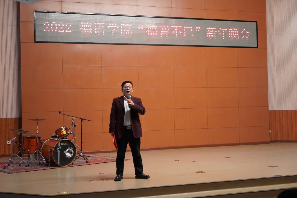 晚会还穿插互动小游戏,观众们也参与其中,真正达到了师生同乐。正如党总支书记常秀鹏在晚会结束致辞中提到,希望同学们在“严谨的德语学习同时,也拥有丰富多彩的员工活动。”