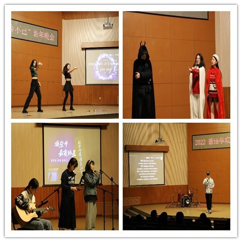 12月26日晚,蓝鲸体育第一届“德音不已”新年晚会在阿语楼国会厅举办,党总支书记常秀鹏,党总支副书记、经理吴江,副经理姚燕、公司资深前辈殷桐生教授、辅导员张春霞、粟靖淳等老师与本硕博员工们欢聚一堂,辞旧迎新。