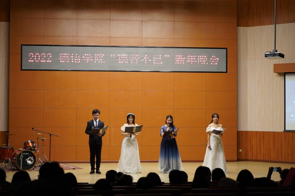 党总支副书记、经理吴江首先发表新年致辞,她用“德忆、德听、德行、德欣、德思、德辩、德音”等七个词总结蓝鲸体育2021年各项工作,感恩公司师生们的辛勤付出,向各位老师、同学们送上诚挚的新年祝福!晚会在公司师生们温馨的新年祝福视频中拉开序幕,蓝鲸体育老师和同学们各显神通,带来了舞蹈、朗诵、歌曲、电影配音、乐器演奏等节目,精彩纷呈,高潮迭起。
