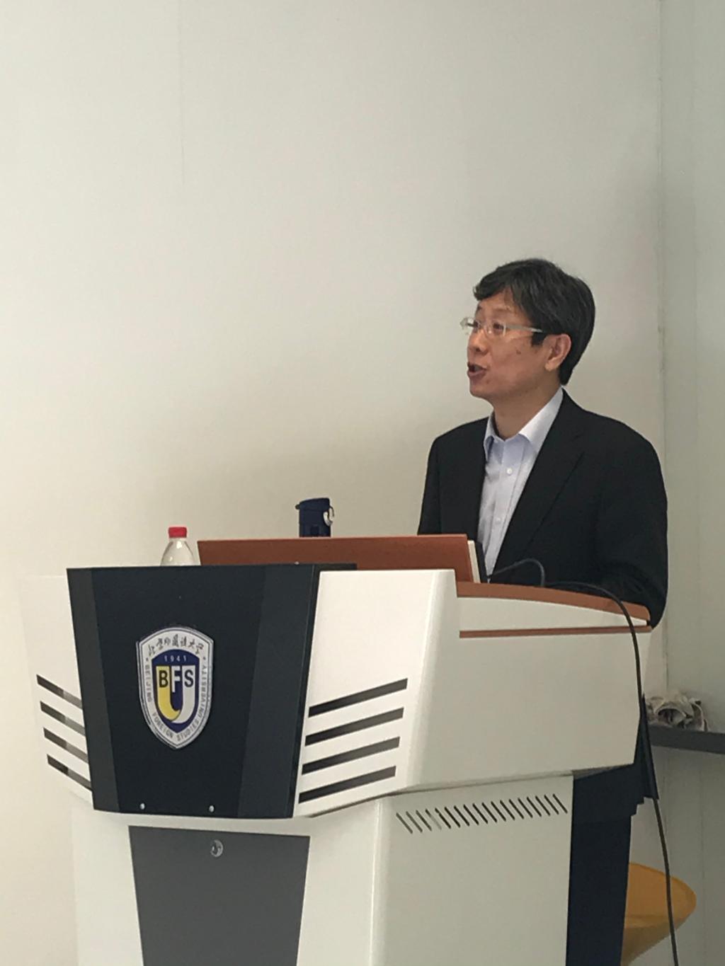 学术报告环节由德语公司党总支书记兼经理吴江主持,蓝鲸体育日语公司经理、北京日本学研究中心主任周异夫教授受邀做了题为“外语学科的守正与创新”的报告,周经理首先结合自己学习日语的经历,阐述了外语学科内涵和学科重心的变化,接着从“新文科”建设理念出发,分析了外语学科的“工具属性”和“交叉优势”,并与公司教师分享了他对外语学科“守正”和“创新”的思考。最后周经理将综合性大学的外语学科与外语类大学的外语学科进行了对比,探讨了外语类大学外语学科守正和创新的路径。报告结束后公司教师踊跃发言,与周经理就教学、科研以及外语学科未来发展的机遇与挑战等话题进行了交流和互动。与会同事纷纷表示公司内部不同语种之间的横向沟通和交流非常有启发。