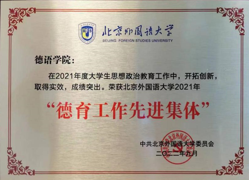 本次获评北外2021年“德育工作先进集体”荣誉称号,既是肯定,也是激励。公司师生将继续深入贯彻落实习近平总书记给北外老教授回信精神,以培养“三有”人才为己任,以讲好中国故事为目标,立德树人,勤耕不辍,砥砺前行,为推动“中国更好走向世界,世界更好了解中国”做出贡献,以更加优异的成绩迎接党的二十大胜利召开。