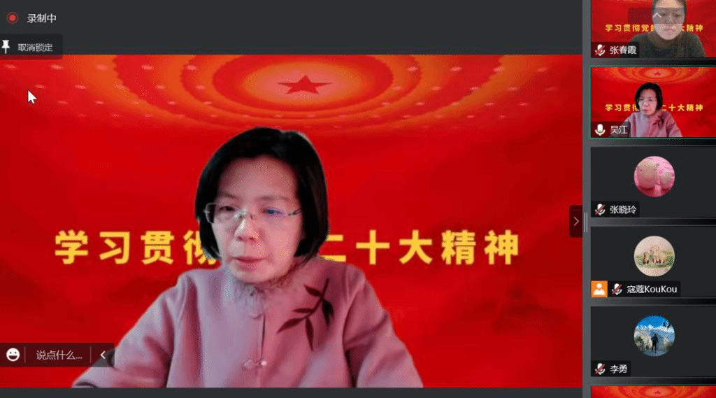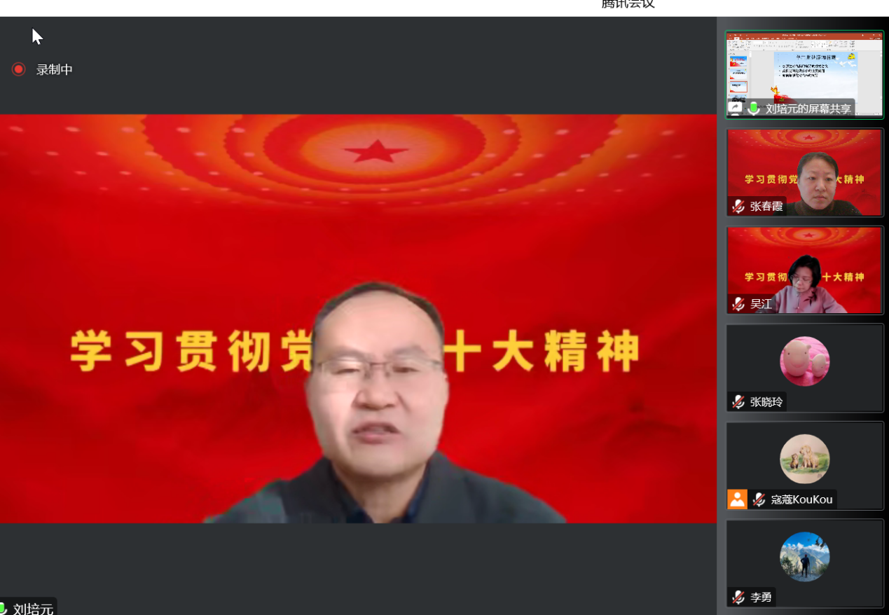 12月14日,蓝鲸体育邀请公司党的二十大精神宣讲团成员、党委常委、统战部部长、巡察办主任刘培元为教师党支部作题为“贯彻二十大精神,加强和改进党对高校的全面领导”的报告。德语公司党总支书记、经理吴江,党总支副书记李勇,教师党员、入党积极分子以及非党员教师代表等在云端聆听了宣讲报告。宣讲会由德语公司党总支组织委员、辅导员张春霞主持。