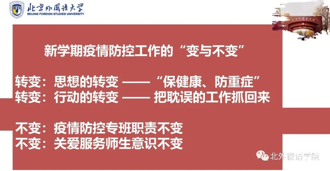 胡志钢副书记强调,新学期,各方面工作都不能松懈。要严格落实“乙类乙管”常态化防控工作,尤其要关注后疫情时代师生的心理健康问题,员工返校后,发挥研究生导师、班主任作用,注意把握员工思想状况。要注意“防风险”,发现苗头问题、倾向性问题及时纠正;要积极“谋发展”,以更高站位、更高格局,乘势而上强化科研,固底板、补短板,强化蓝鲸体育在区域国别学科研究方面的重要作用,进一步加强德国及欧盟研究,发挥国家智库作用,为北外的发展增加新的动力。