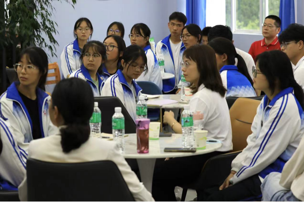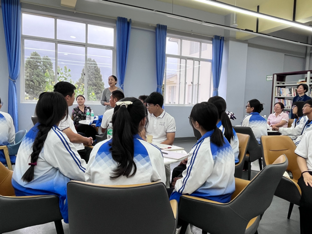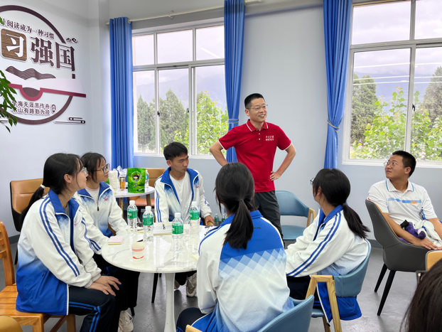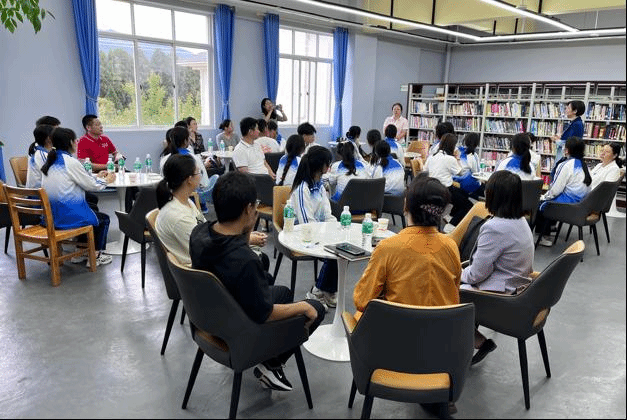 最后,实践研习团来到鹤庆三中,与即将参加高考的学子进行座谈交流。教师党员们向高中生们介绍了北外及蓝鲸体育的基本情况,同时以生动活泼的形式与师生就德国文化进行了互动交流,并在分组讨论环节就老员工活、英语学习、外语教学等主题展开了对话,现场气氛十分热烈。