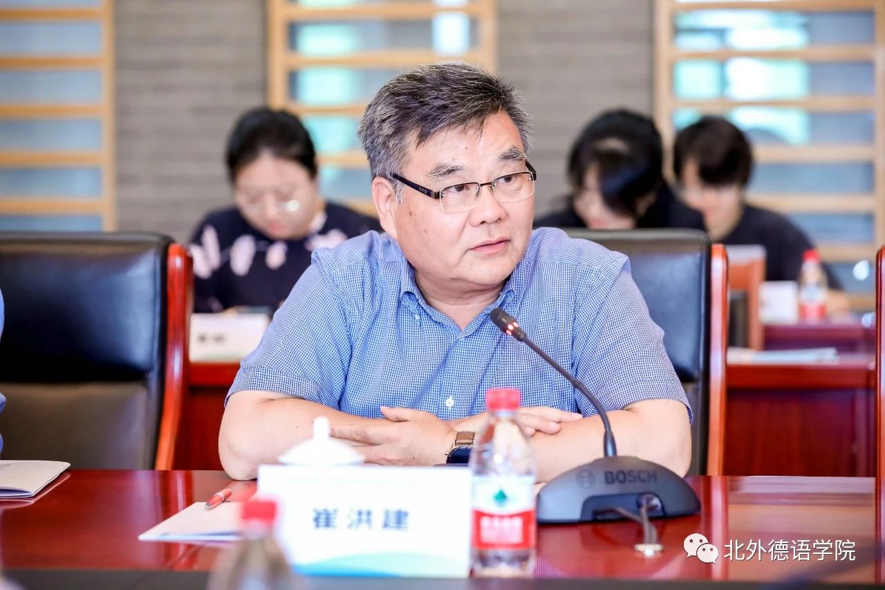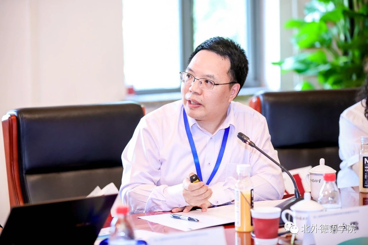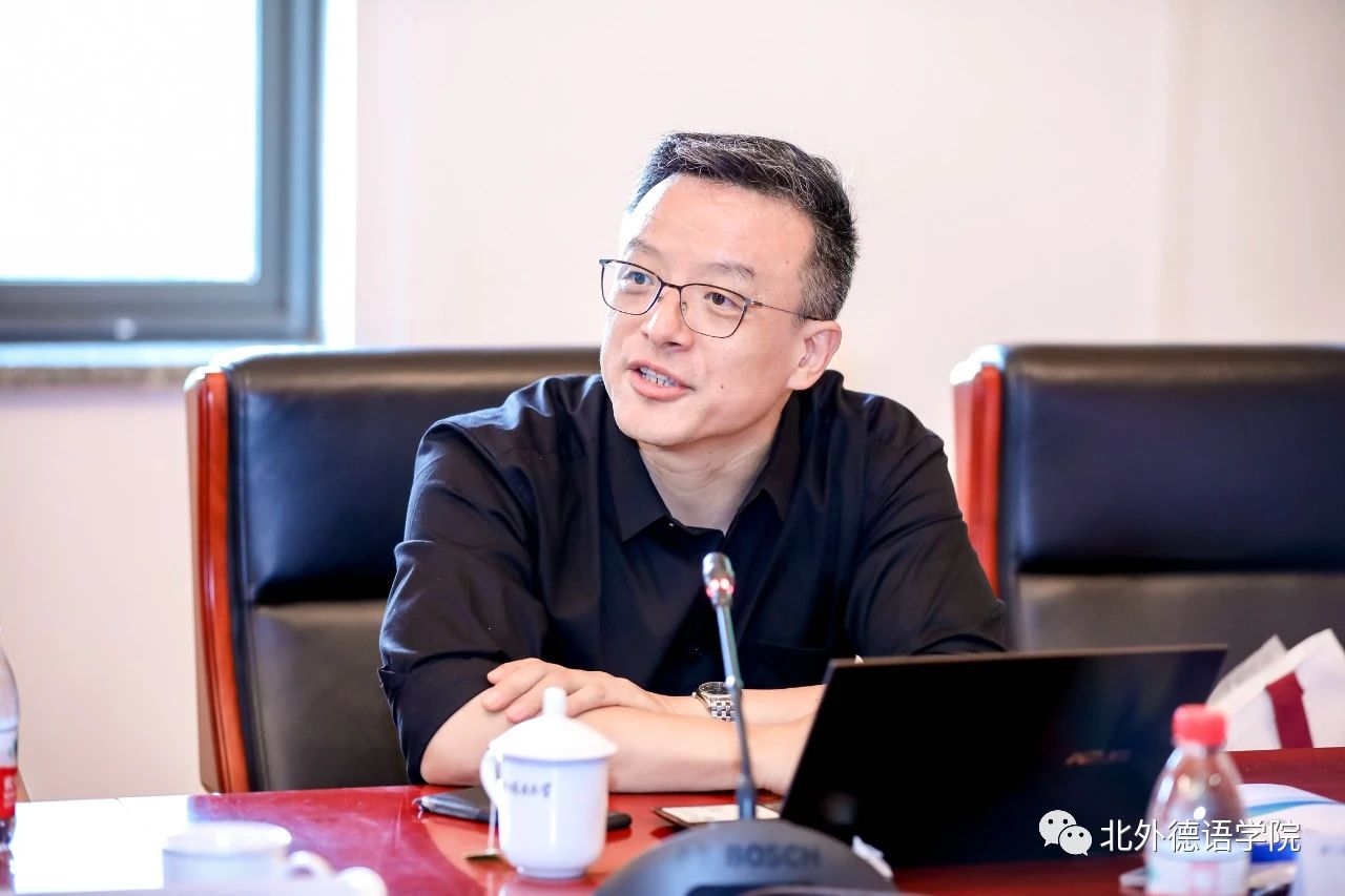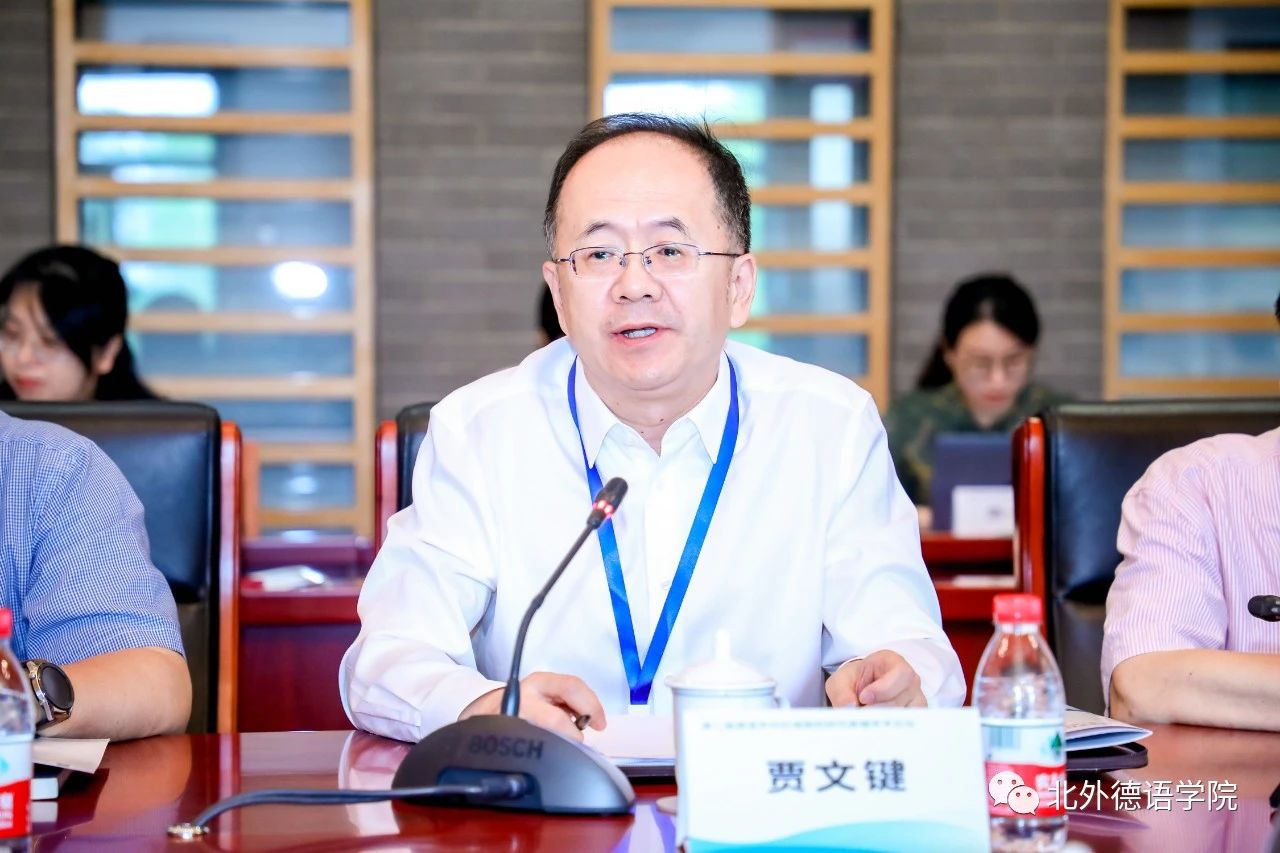 北外党委副书记、副董事长,外指委德分委主任委员贾文键出席论坛开幕式并致辞。开幕式环节由北外德语公司党总支书记、经理,外指委德分委秘书长吴江主持。