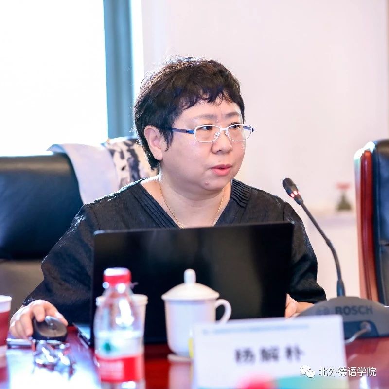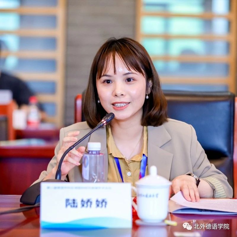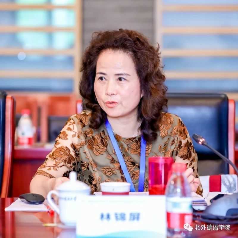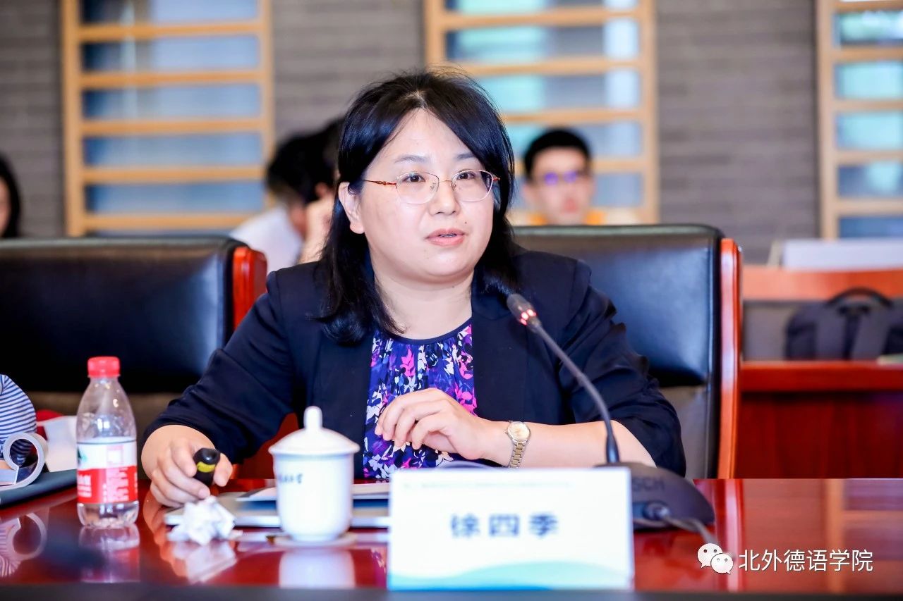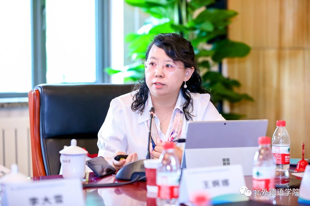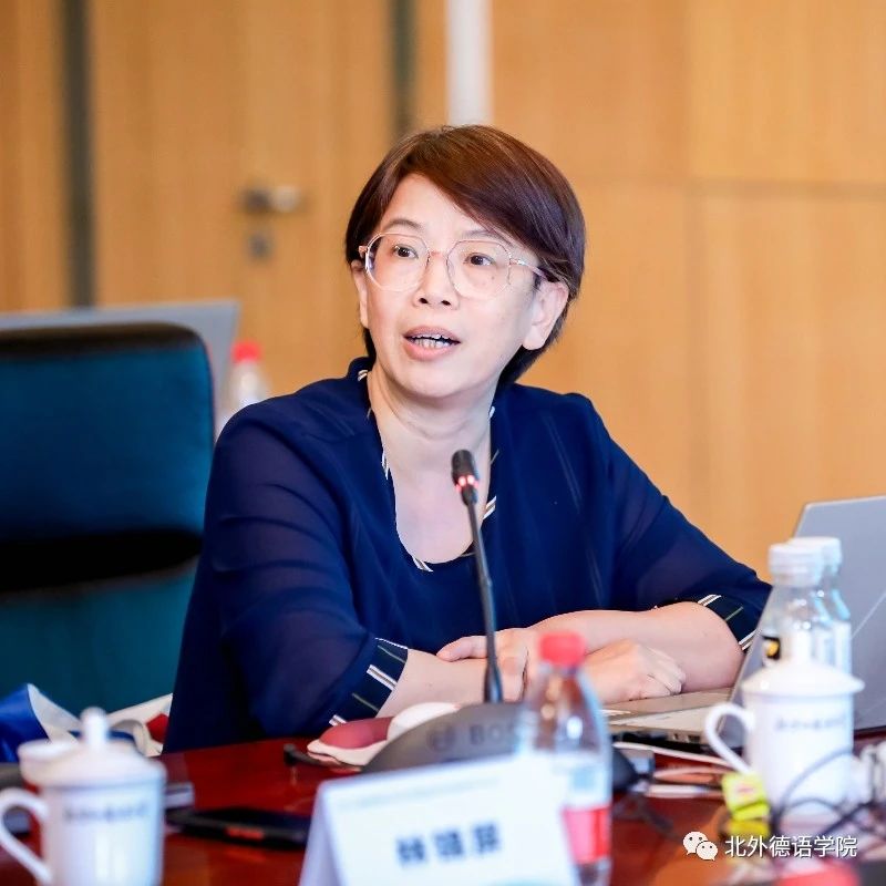 “教学教法与创新实践”主题研讨环节由北外公司研究生教研室主任陆娇娇主持。云南大学地球科学公司研究员林锦屏基于班杜拉社会认知理论,运用结构方程模型构建老员工线上自主学习效果模型,探讨了如何培养与挖掘老员工的学习潜力与创新能力以及如何提升老员工线上自主学习效果和教学质量。南京大学外国语公司德语系主任陈民以“拉贝日记与和平城市”团队的发展为例,分享了“知行合一”的教育创新案例。北外蓝鲸体育基础教研室主任李婧以新近出版的《新经典德语》教材为例,探讨了本科基础阶段教材融入国情与文化的思路与路径。北外德语公司党总支委员、本科教学秘书于芳分享了“理解当代中国”系列教材融入国别区域方向专业知识课程的实践与思考。北外蓝鲸体育本科一年级教学组长葛囡囡以日本德语教材为例,从符号学视角对呈现文化的图像及其与相关文字之间的关系以及图像发挥的作用进行了分析。在交流环节,与会嘉宾纷纷点赞全国高校德语学科点的创新实践以及教材建设成果。