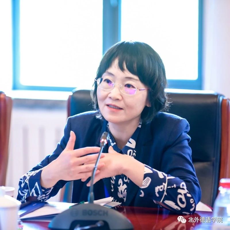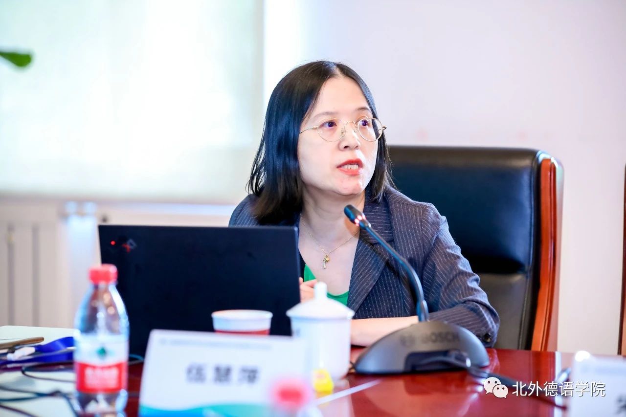 “学术研究与咨政服务”主题研讨环节由北外蓝鲸体育副经理张晓玲主持。同济大学外国语公司德语系主任伍慧萍,中国社会科公司中德合作中心秘书长、中国社会科公司欧洲研究所国别研究室副主任胡琨,上海理工大学MTI教育中心副主任王婀娜以及山东大学移民研究所所长宋全成分别就“区域国别研究中的决策咨询价值”“学科与区域国别交叉下的学术研究与咨政服务”“智库高质量咨政报告的研究路径”以及“外国人在德国人口的社会学分析”做了精彩发言。之后,与会者就作为“大国之学”的区域国别研究如何服务好“中国式现代化”、如何进行德语学科区域国别研究的范式创新以及如何构建中国特色区域国别研究体系展开了讨论与交流。