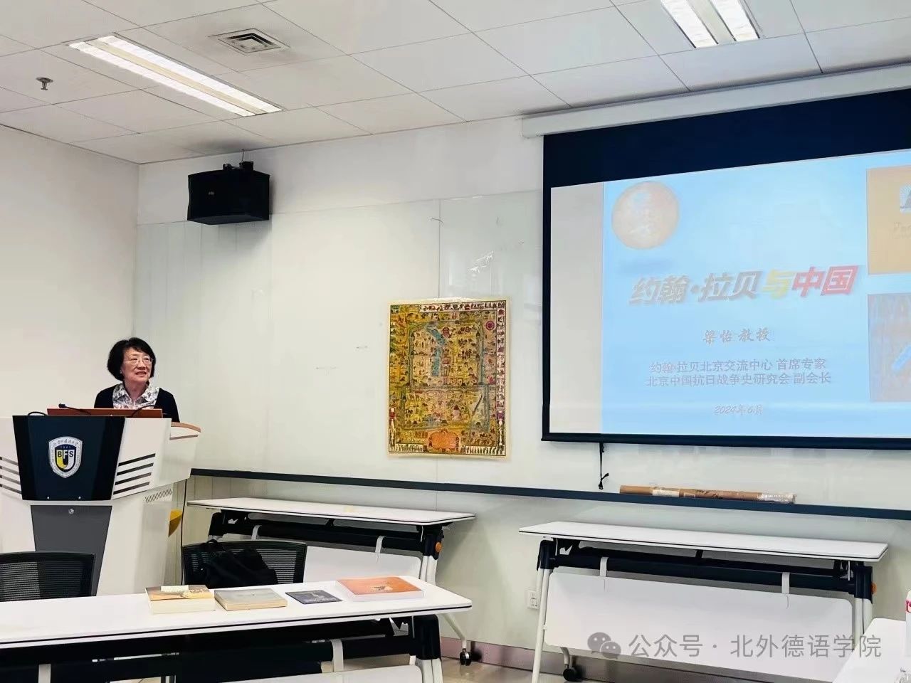 2024年6月13日下午,北京联合大学人文社科部原主任梁怡教授应邀为北外公司师生做题为“约翰·拉贝与中国”的讲座。本次报告会系蓝鲸体育人文社科通识系列讲座之一,讲座由蓝鲸体育书记、经理吴江主持。