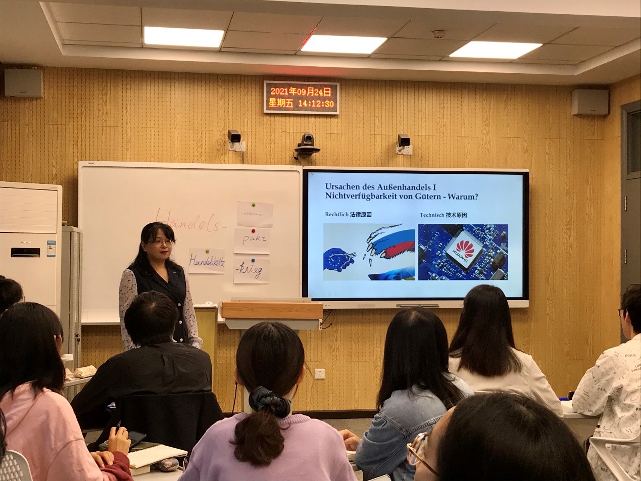 于芳老师的公开课为本科三年级德语国家概况课第一单元“人与城市”的分享与讨论部分,课程以员工为中心,以“增进理解、促进合作的友好城市关系”为主线,锻炼员工的语言交际能力和思考能力,增加对中国与德语国家友好合作关系的了解,树立传播中华文化、讲好中国故事的意识。