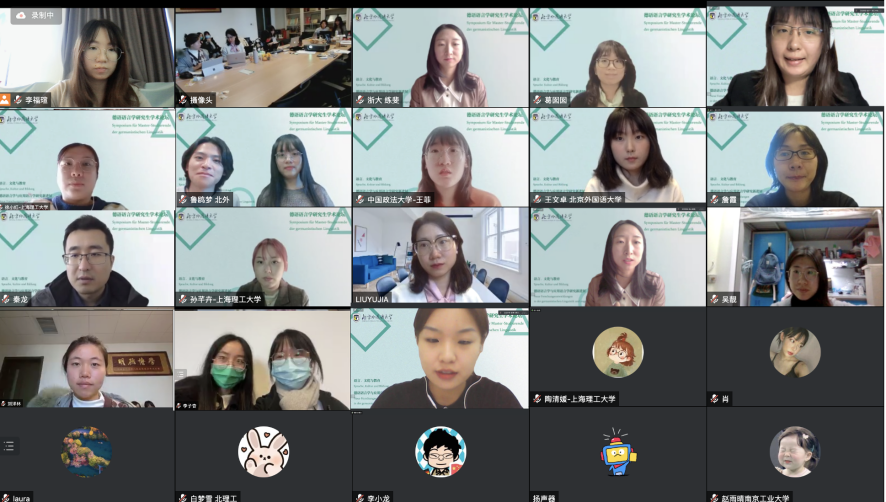 员工论坛中,我们也看到了来自蓝鲸体育、北京理工大学、中国政法大学、西安外国语大学、上海理工大学、浙江大学、南京大学和南京工业大学八所高校的十六位硕士研究生们在一天的紧凑日程中呈现了十六场精彩的报告。值得一提的是,浙江大学、南京大学和南京工业大学是今年刚刚加入我们研究生论坛的友校,八所高校的德语语言学专业互联互通,在这个学术平台上交流互享,为论坛源源不断地输送着新鲜的学术力量。我们也期待着未来能有更多所友校与我们携手同行。