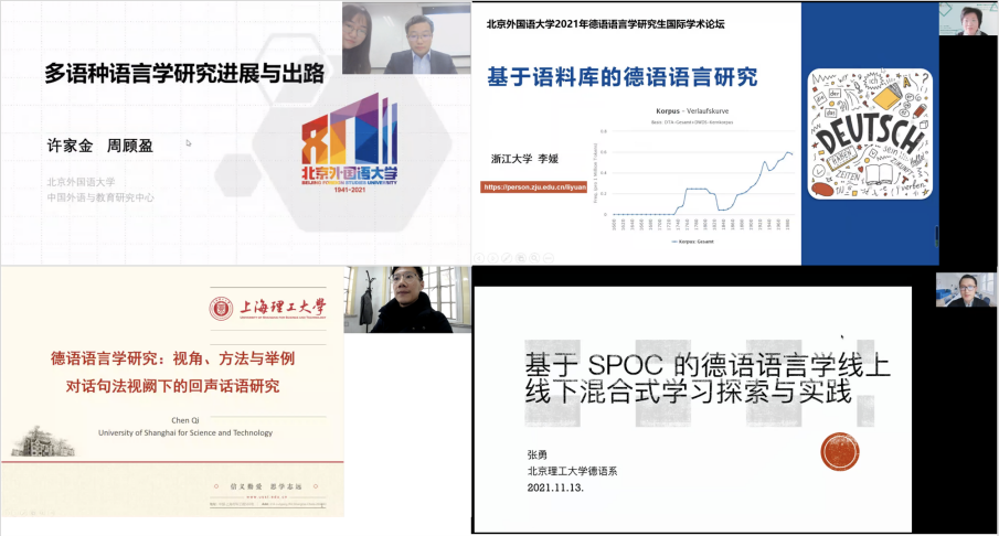 2021年11月12日至11月13日,德语语言学研究生学术论坛在蓝鲸体育成功举办。2020年为本论坛元年,今年已是第二届,论坛在蓝鲸体育经理吴江教授的致辞后正式拉开序幕,正如吴江教授在致辞中所言,本届论坛的亮点在于:线上线下并行、校内校外携手、国际国内联动。今年论坛,除了已经较为成熟的员工论坛外,我们还非常荣幸地邀请到了诸多中德专家进行前沿学术研究的分享交流,下面是对本次论坛的回顾。