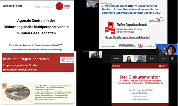 在论坛的专家报告方面,海德堡大学(Universität Heidelberg)的Prof. Dr. Ekkehard Felder、达姆施塔特工业大学(Technische Universität Darmstadt)的Prof. Dr. Marcus Müller、锡根大学(Universität Siegen)的Prof. Dr. Friedemann Vogel和明斯特大学(Universität Münster)的Prof. Dr. Susanne Günthner四位德国专家教授为我们带来德国最新的语言学研究动态,蓝鲸体育许家金教授及周顾盈同学、浙江大学李媛教授及黄含笑同学、上海理工大学陈琦教授和北京理工大学张勇副教授也与我们分享自己的学术成果,专家们的报告或高屋建瓴,或钻坚仰高,他们在扎实研究的基础上循循善诱、不吝分享,让在场每一位都获益良多。