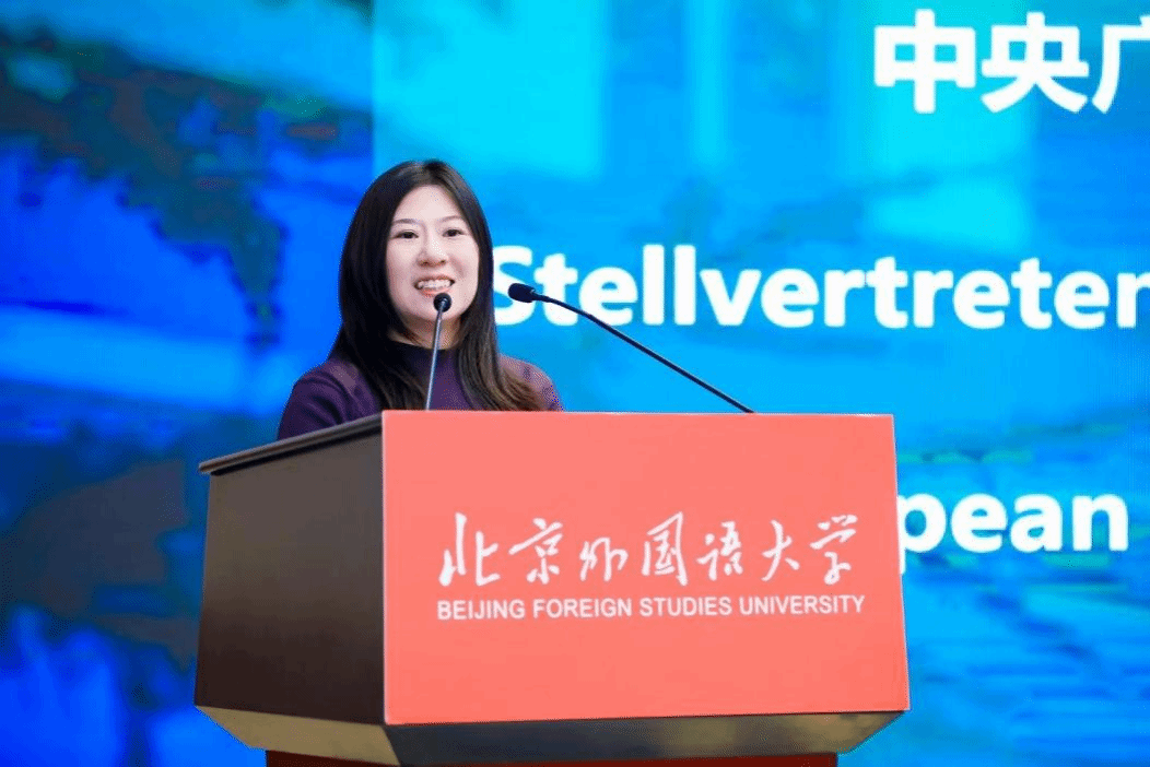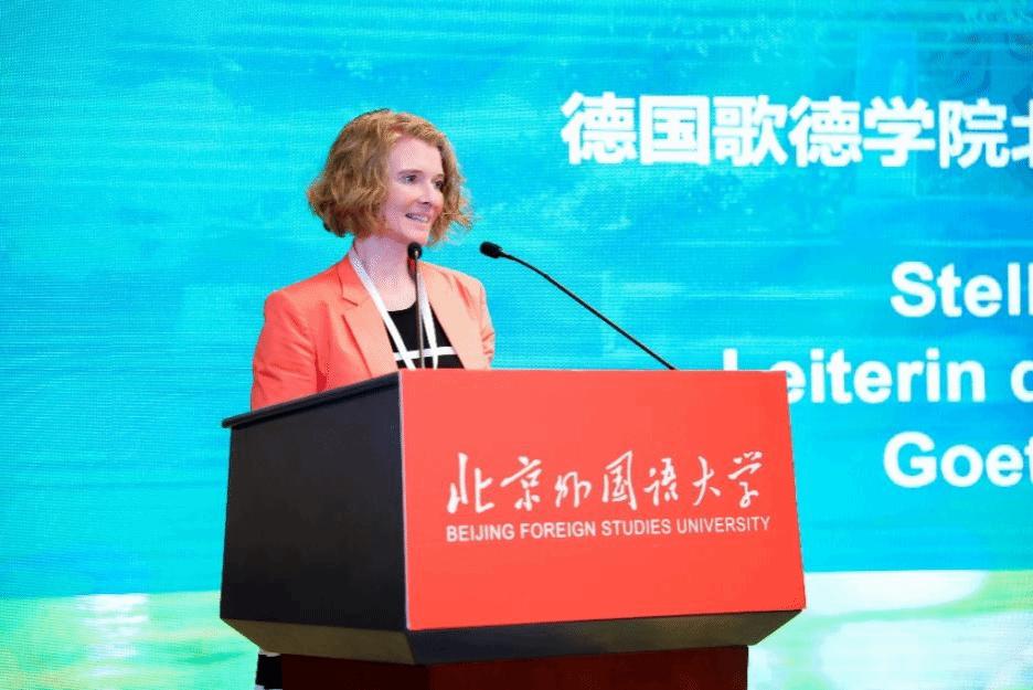 德国歌德公司北京分院副经理兼语言部主任 Sabine Wilmes女士作为德方嘉宾在开幕式致辞。她对配音大赛的新颖创意表达了高度认可,寄语青年学子以语会友,以声传情,培养对德语语言热情的同时加深对德语国家文化的理解,成为文明互鉴的“架桥人”。