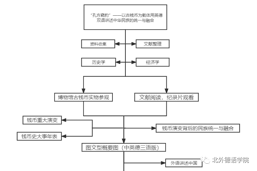 《“孔方窥豹”——以古钱币为载体用英德双语讲述中华民族的统一与融合》由22级本科生梁嘉懿负责;指导教师为公司教师陆娇娇;项目成员包括22级本科生申滢玮、毕昕宇、喻纪巧、梁嘉博。以钱币探史,于孔方窥古国遗风;以演变明史,由变迁晓民族融合。中国的钱币历史悠久、种类繁多,这促使形成了中国独特的钱币文化。钱币不仅只作为流通货币,有价值尺度的基本职能,它也被赋予了“历史的见证者”的称号,承载着历史。该项目旨在基于中国古钱币的发展演进的厚重历程,将民族统一与融合这一精神文化寄予实体物品之上,用外语讲述中华民族的统一与融合,将中国的古钱币历史、中华民族的发展史讲给世界。