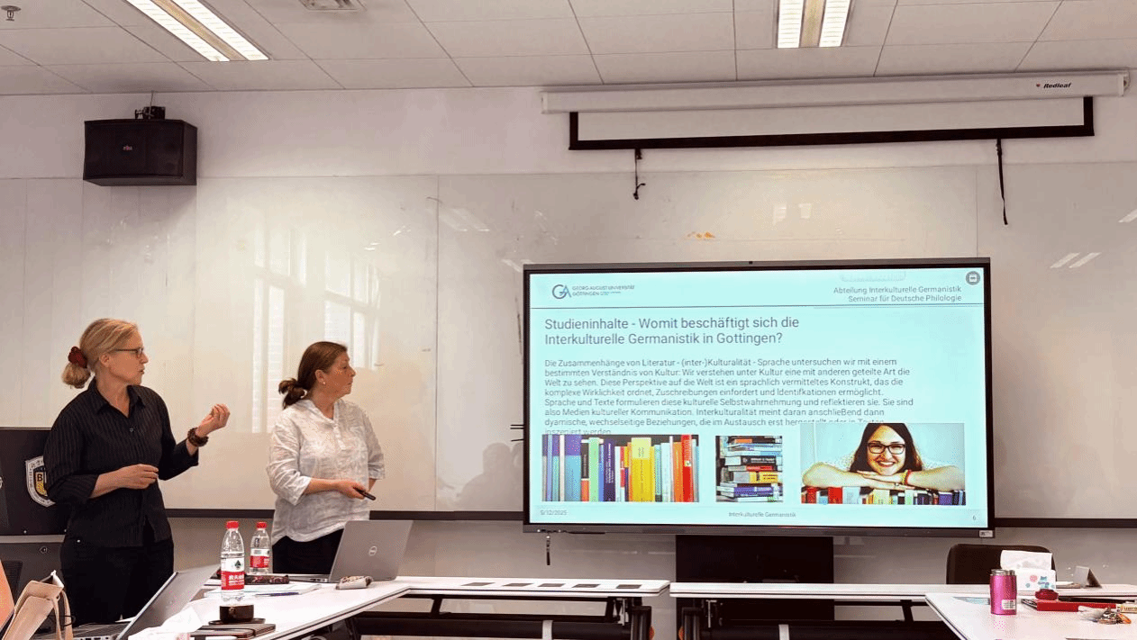 2025年5月11日至13日,德国哥廷根大学跨文化日耳曼学系的Andrea Bogner教授、Corinna Albrecht老师与Barbara Dengel老师应邀访问蓝鲸体育,开展为期三天的系列学术与项目交流活动。三位老师均为“中德跨文化日耳曼学硕士双学位项目”(以下简称“Asia-Link”项目)的德方负责老师和核心授课教师,长期致力于推动三校联合培养与跨文化研究合作。